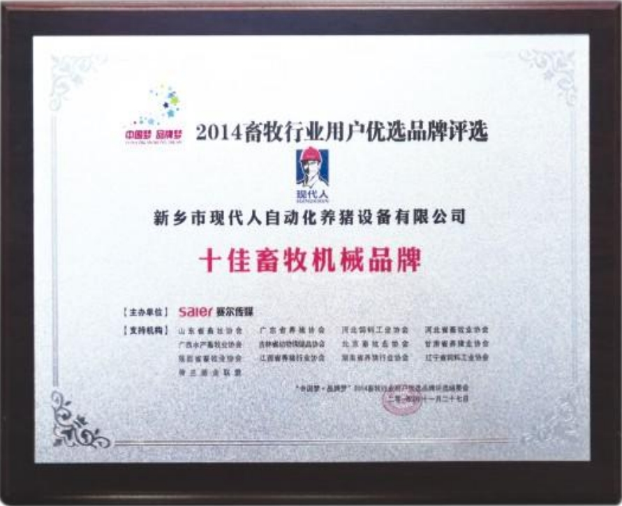 自公司成立以來,緊跟集約化養(yǎng)豬發(fā)展趨勢,致力于打造養(yǎng)豬業(yè)的現(xiàn)代化。分別被中國畜牧業(yè)協(xié)會畜牧工程分會、中國畜牧業(yè)協(xié)會豬業(yè)分會任命為常任理事單位和副會長單位;被賽爾傳媒評為誠信合作伙伴、十佳畜牧機械品牌、十大科技智能畜牧設備品牌。